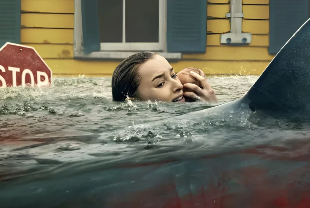 Netflix Premieres Shiver a Survival Thriller Merging the Chaos of a Category 5 Hurricane with the Threat of Apex Predators in a Flooded Coastal City.